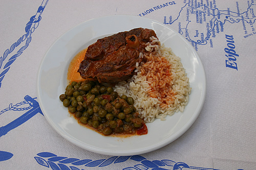 | We propose some of our special dishes like the local with tomato sauce goat, traditional pastitsio, tas-kebab, and the filled burger |
