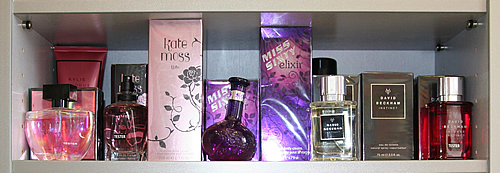 | Taba c, Nina Ricci, Beekham, Estel, Lauder, Lalique, Roberto Cavalli, Tommy, Kylie Minogue, Kate Moss, Barbie, Disney, Aslanis. |